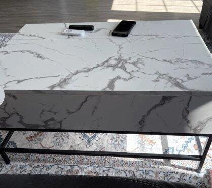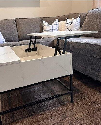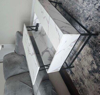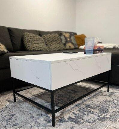 I AM IN LOVE WITH THIS TABLE! It is so sleek and perfect for our small living room! I love how you can extent the top and pull it out to make it easy for eating or even working on your laptop. It was very easy to install. Only annoying thing is you need to be careful when screwing in the screws because it did chip a little. It was only inside the table so you can’t see it.BONUS: I love how it has so much storage!