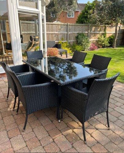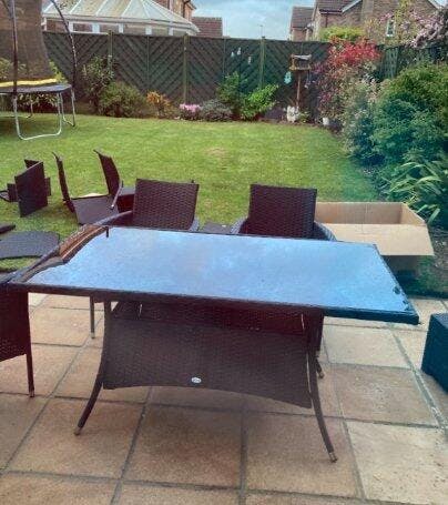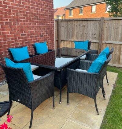Just what I wanted a six seater table & chairs for the garden, the build quality seems good but obviously time will be the real test. We had one minor issue with one part and to be fair luxury living lounge sent another part within a week of contacting them. Like others have said before putting the furniture takes a little time but one you’ve done two chairs you will have found the knack.